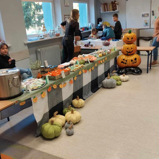 W minioną sobotę, 19.10.2024, mieliśmy przyjemność uczestniczyć w Festynie Dyni i Ziemniaka, który okazał się prawdziwym świętem smaków i talentów! Nasze stoiska kulinarne były pełne pyszności, które zachwyciły wszystkich uczestników. Na stole królowały: sernik dyniowy, babeczki dyniowe, blok czekoladowy, świeżo wyciskane soki, a także rogaliki, babki i wiele innych smakołyków. Zupa dyniowa, zapiekanka ziemniaczana oraz kawa dyniowa.... Każdy mógł znaleźć coś dla siebie!
